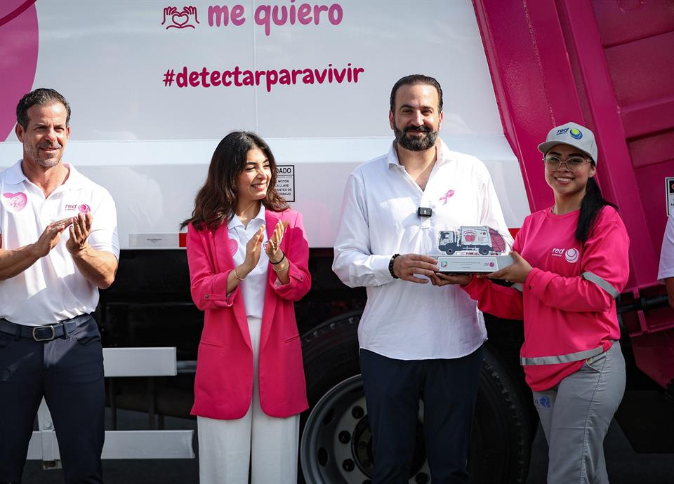 El Alcalde Mauricio Farah Giacomán dio el banderazo de salida a los camiones rosas, que llevarán un mensaje de concientización sobre la autoexploración al realizar sus recorridos habituales de recolección.