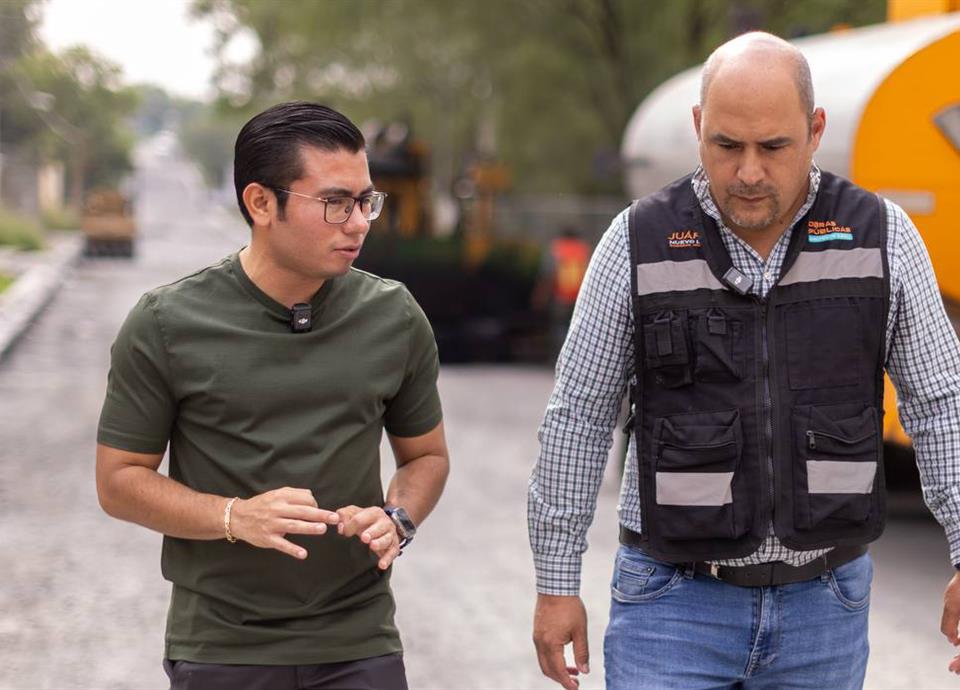 El alcalde del municipio de Juárez, Félix Arratia Cruz, supervisó los trabajos de pavimentación en la calle Sección 68 de la colonia Lomas del Sol, en la zona Centro de Juárez.
