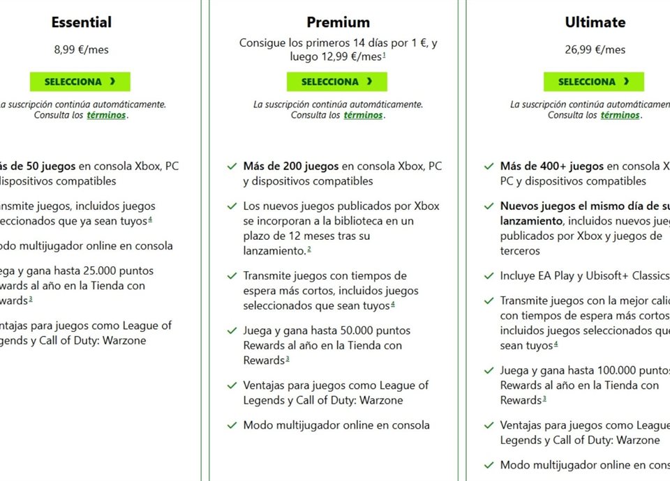 Todos los usuarios de los planes antiguos pasarán automáticamente a los nuevos, de forma que los suscriptores actuales de Game Pass Core pasarán automáticamente a Essential, los suscriptores Estándar a Premium y los suscriptores Ultimate permanecerán en el plan Ultimate, que es el único que no cambia de nombre pero si de precio.
