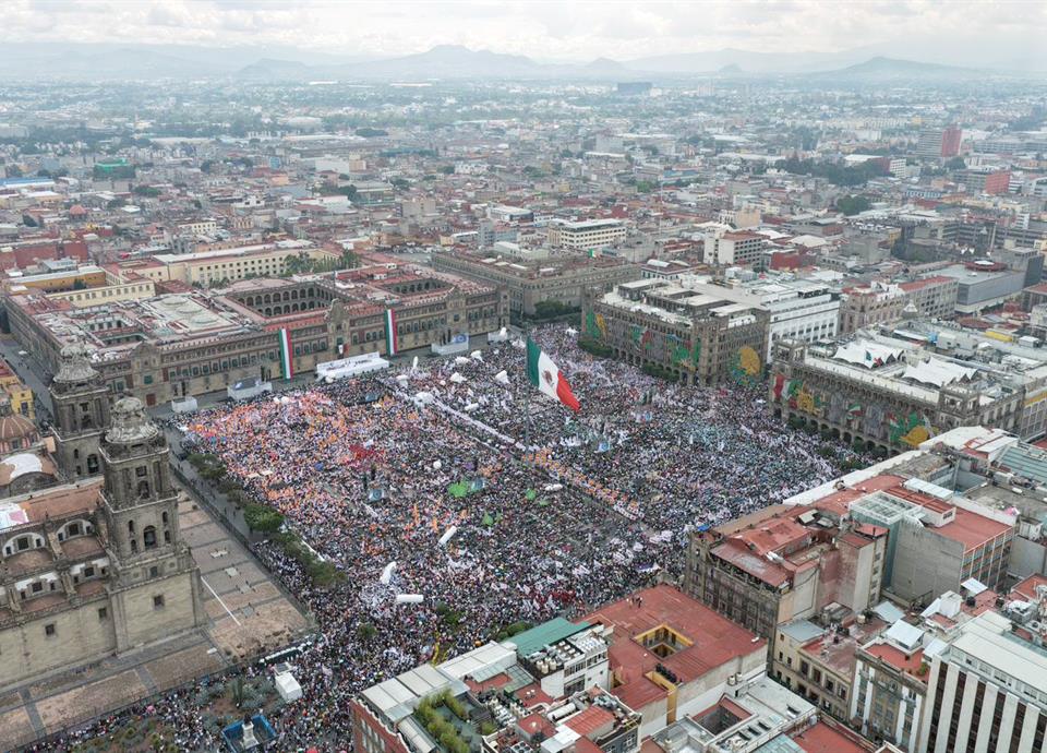 MÉXICO.- Apenas subió la presidenta al templete para presentar su cierre de informe por su primer año de gobierno, y el Zócalo se fundió en aplausos, gritos, papelitos verde, blanco y rojo. La celebración fue casi total, con apenas algunas protestas dispersas entre el público y los inevitables apachurrones de la multitud.