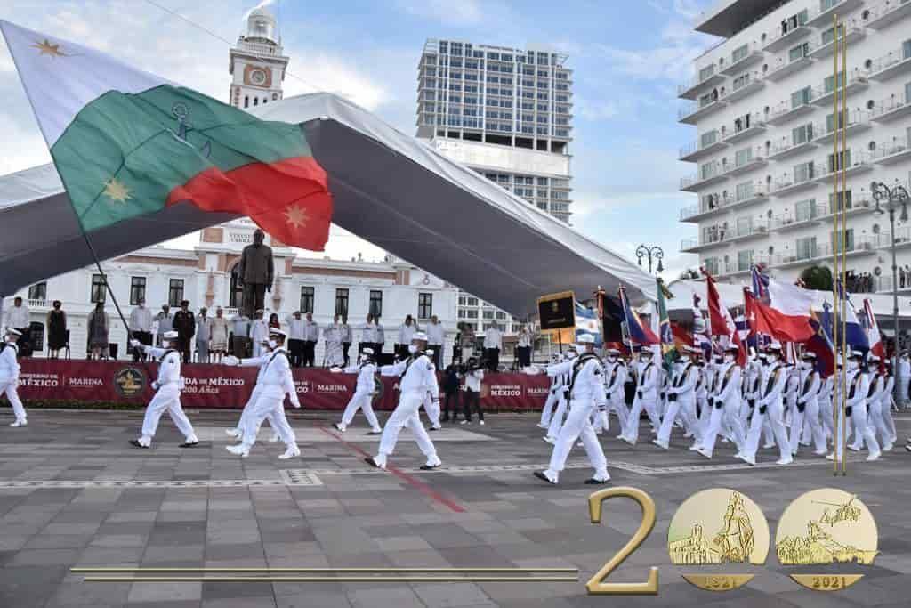, almirante José Rafael Ojeda Durán, refrendó que la institución naval ha mantenido intacta la promesa de su génesis: el ser una Armada del pueblo, para el pueblo y con el pueblo. "Desde aquel 4 de octubre de 1821 la promesa se ha mantenido intacta: ser una Armada del pueblo, para el pueblo y con el pueblo. Hoy refrendamos este juramento, pues para los marinos navales nuestra patria lo es todo, en ella depositamos la fuerza moral que nos sostiene. Dos siglos de navegar sirviendo a la Armada de México", aseveró. Ante el presidente Andrés Manuel López Obrador, así como integrantes del gabinete, embajadores, representantes navales y militares de otros países, el alto mando naval destacó que durante 200 años la Armada de México ha constituido el escudo de la nación, cumpliendo ininterrumpidamente con su deber de garantizar la soberanía nacional en la paz y mantener el orden en el Estado mexicano. En la explanada del Fuerte de San Juan de Ulúa, en este puerto, el titular de la Marina expresó que, amén de celebrar el aniversario, es necesario exaltar el valor de la Independencia, de la libertad y la soberanía alcanzadas por nuestra patria. "Desde su génesis nuestra institución ha contribuido a las grandes causas de la nación, y así lo ha hecho, con una legítima y honesta vocación de servicio", aseveró el alto mando. Destacó que en la historia de la Armada mexicana se han priorizado la salvaguarda de la vida humana en la mar y el apoyo a la población civil en casos de desastres, en los que se brindan ayuda humanitaria y auxilio a la sociedad civil en los momentos más apremiantes mediante el Plan Marina, como se ha aplicado durante la presente coyuntura causada por la pandemia de Covid-19. "Hemos sabido navegar con en el tiempo, modernizando nuestros procesos, aspirando a la vanguardia, fortaleciendo día a día nuestras capacidades de respuesta operativa, sin olvidar que nuestros ideales se encuentran vinculados a los anhelos de cada mexicano", aseguró el almirante Ojeda Durán. "Cada asignatura navegada es símbolo de nuestro gran amor por México, sentimiento que ha ido germinando y nos ha hecho merecedores de la mayor recompensa que pueda existir: el cariño, el respeto, la solidaridad, el apoyo y la confianza de cada ciudadano de este país", agregó. El presidente Andrés Manuel López Obrador destacó que el pago de la Marina Armada de México en 200 años de historia ha ido desde la defensa de nuestra soberanía y territorio, hasta la ayuda en desastres naturales, seguridad, apoyos a tareas de seguridad, recientemente contra la pandemia de Covid-19 y en el Plan Nacional de Vacunación. "La Secretaría de Marina Armada de México está al servicio de la nación, del pueblo, del desarrollo y del bienestar, y expreso por ello mi reconocimiento a todos los integrantes de esta institución fundamental del Estado mexicano, y a nuestro paisano, faltaba más, reconocer aquí a nuestro paisano, también veracruzano, al almirante Rafael Ojeda Durán, secretario de Marina", aseveró el Mandatario. Durante la ceremonia se proyectó en los muros del Fuerte de San Juan de Ulúa un videomapping del bicentenario de la Armada de México; además, apareció el binomio canino "Frida", que ha sido fundamental durante el rescate de personas en los pasados sismos registrados en el país.