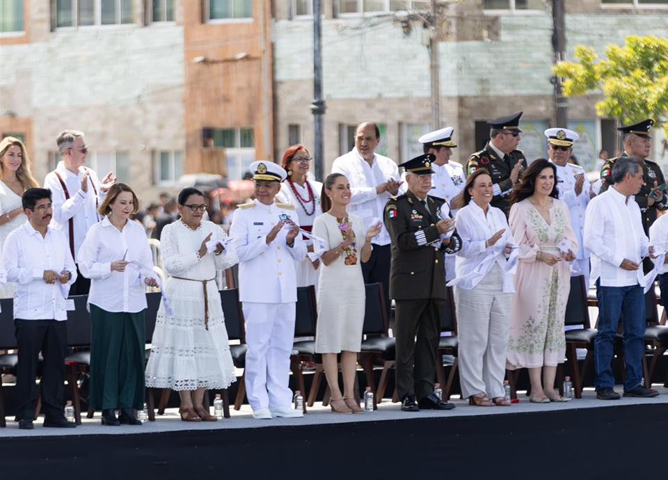 Durante la conmemoración del 204 aniversario de la Armada de México y el 201 aniversario de la Promulgación de la Constitución de los Estados Unidos Mexicanos de 1824 en Veracruz, Sheinbaum Pardo felicitó a los titulares de la Secretaría de la Defensa Nacional (Sedena), general Ricardo Trevilla, y de la Semar, almirante Raymundo Pedro Morales Ángeles.