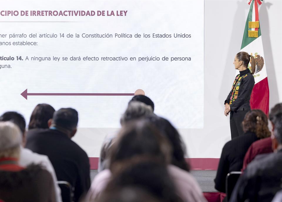 En Palacio Nacional, Sheinbaum Pardo señaló que hay una jurisprudencia para que se respete el artículo 14 de la Constitución, el cual señala que las actuaciones procesales posteriores a la entrada en vigor de este decreto de reforma se regirán por las nuevas disposiciones sin que implique aplicación retroactiva ni afectación a derechos adquiridos, pues se trata de actuaciones futuras. "(...) lo cierto es que el precepto [en la reforma] no tiene la suficiente claridad, ya ha dado lugar a un debate innecesario y a ciertas críticas, descalificaciones y también preocupaciones legítimas, y la Presidenta ha sido muy enfática, reitero que no estamos a favor de ningún tipo de retroactividad", informó.