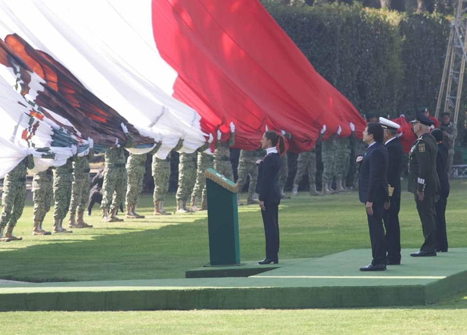 Durante la ceremonia conmemorativa por el Día de la Bandera realizada en Campo Marte, donde estuvo acompañada por integrantes de su gabinete y representantes de las Fuerzas Armadas y estudiantes, la Mandataria federal sostuvo que el lábaro patrio es mucho más que un símbolo, pues representa una "narrativa histórica condensada en tela", en la que convergen el pasado indígena, la lucha independentista y la construcción de la República.
